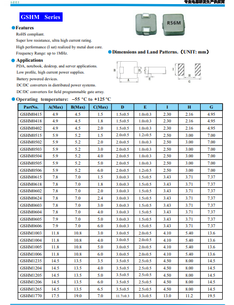 風華一體成型電感有HA63、HA65、HA125三個系列,分別對應(yīng)谷景一體成型電感GSHM0603、GSHM0605、GSHM1205三個系列;除了這三個系列,谷景一體成型電感還有26款以上系列型號,還可以定制感值。