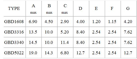 四、 貼片功率電感GBD封裝尺寸列表